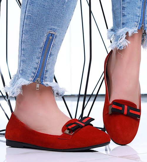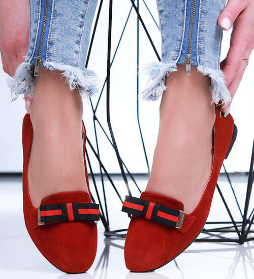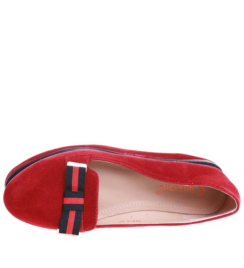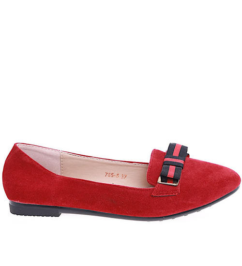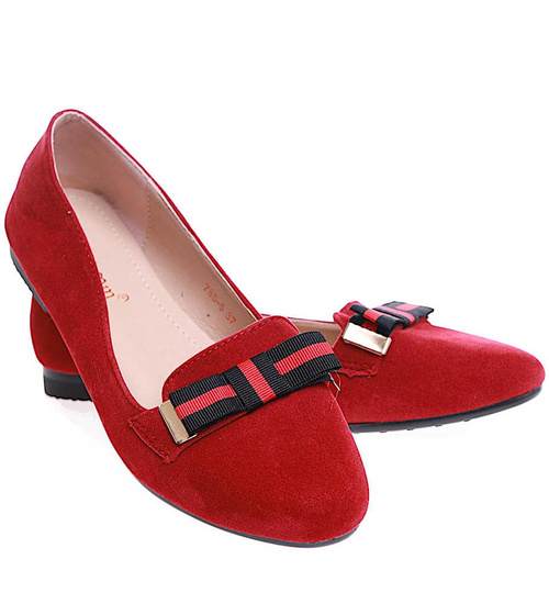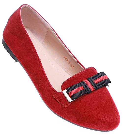 Zamszowe bordowe balerinki z kokardką /E10-2 15993 T194/