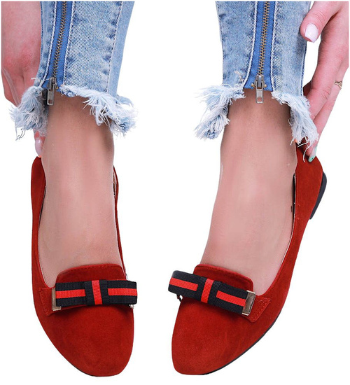 • Stylowe damskie balerinki w modnym, bordowym kolorze.
