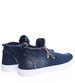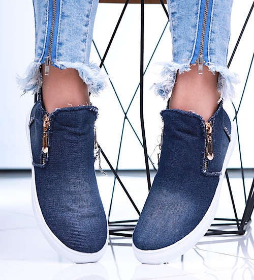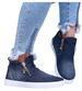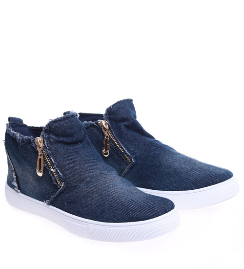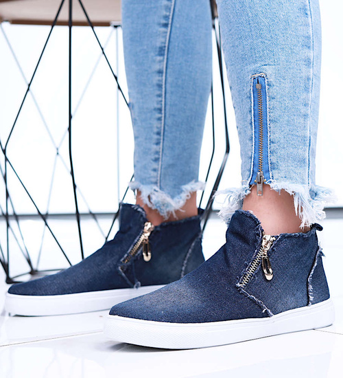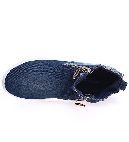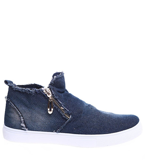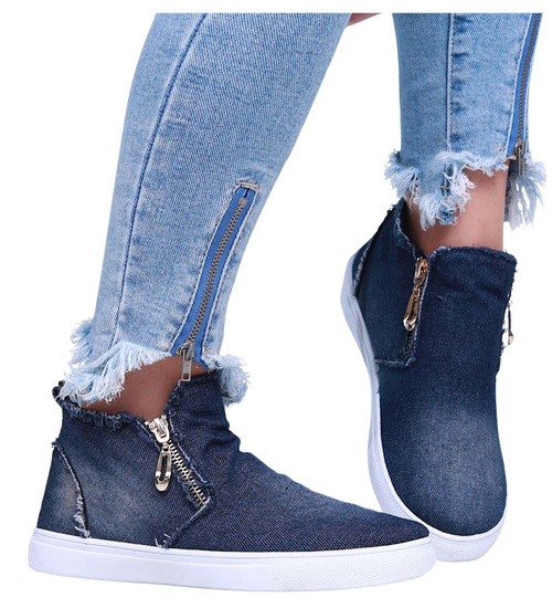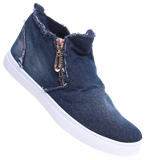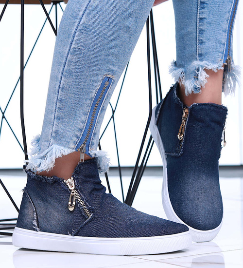 - Praktyczne damskie trampki z podwyższoną cholewką wykonane z miękkiego, jeansowego materiału.