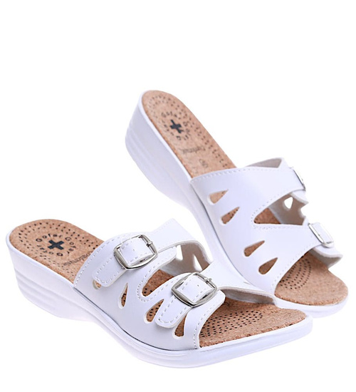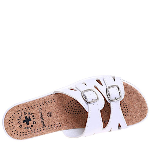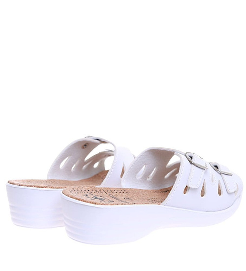 Białe damskie klapki na klamerki /A2-1 16056 T157/