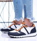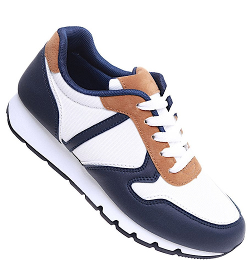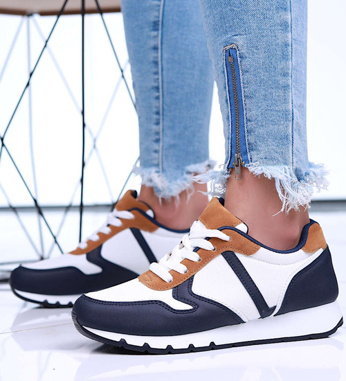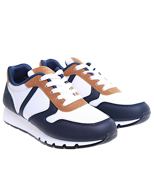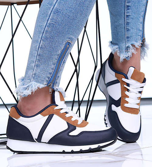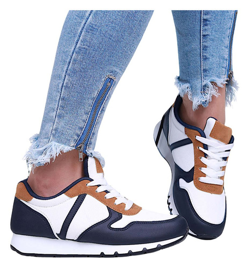 Wiązane damskie obuwie sportowe Biało granatowe /E5-3 16001 T289/