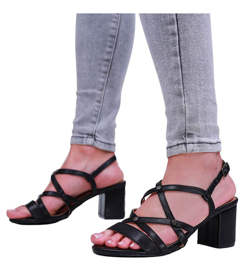 Czarne sandały na grubym obcasie /C3-3 16085 G137/
