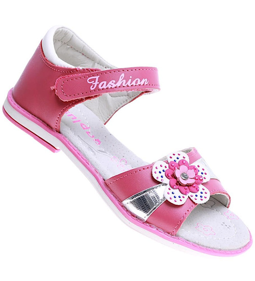 Ciemno różowe sandały dziewczęce z kwiatkiem /G5-2 16014 T186/