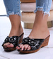 Czarne klapki na koturnie i platformie OST382