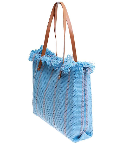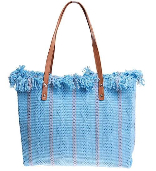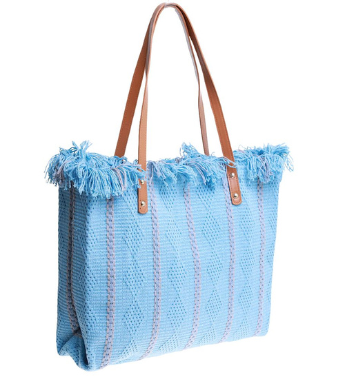 - Duża i praktyczna damska torebka wykonana z mocnego, parcianego materiałuw niebieskim kolorze.