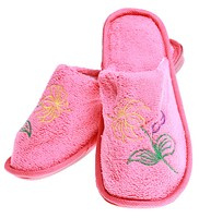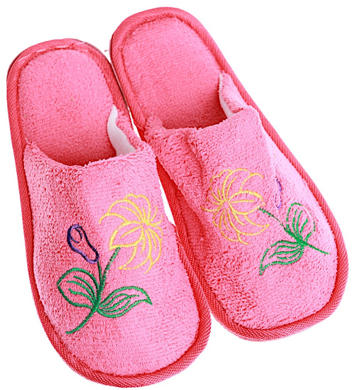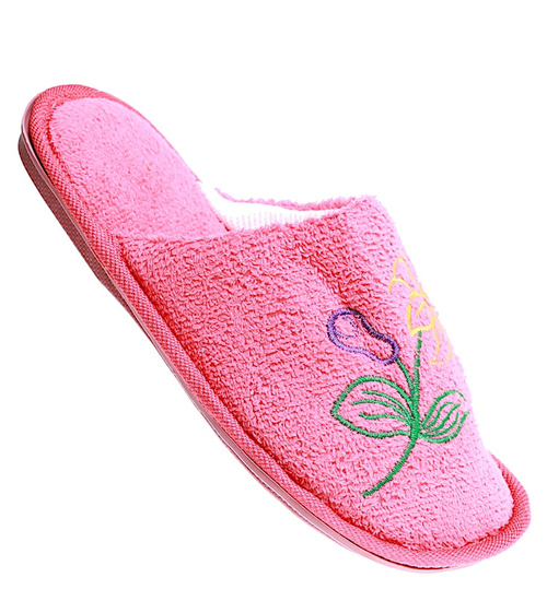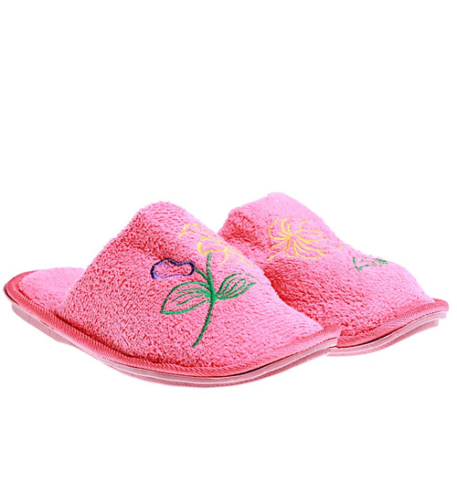 Pluszowe różowe kapcie damskie z haftem /E4-1 15947 S4-5/