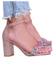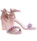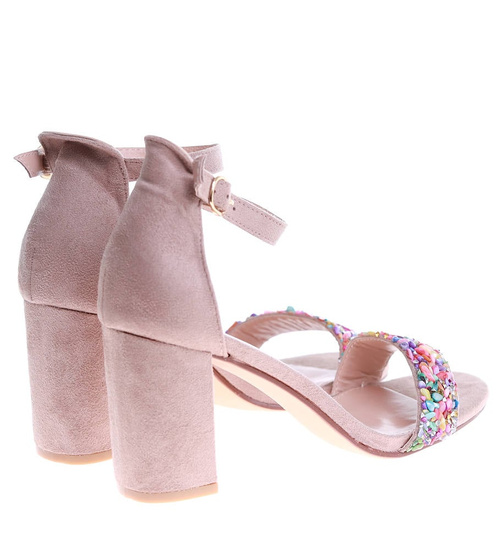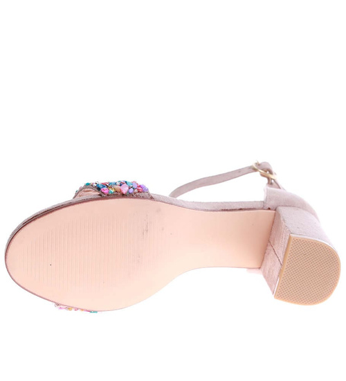 - Sandały wyposażono w gruby, stabilny obcas o umiarkowanej wysokości.