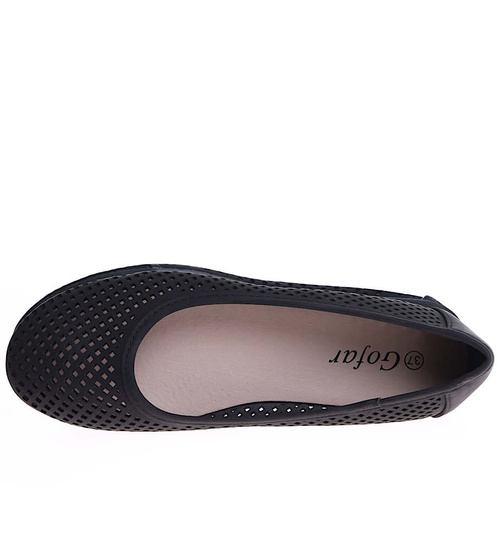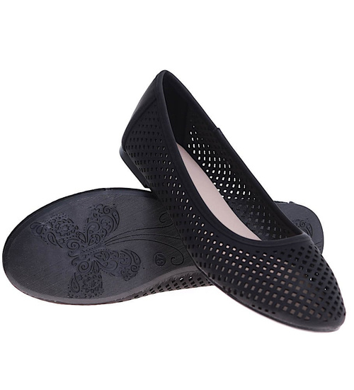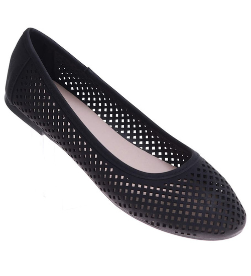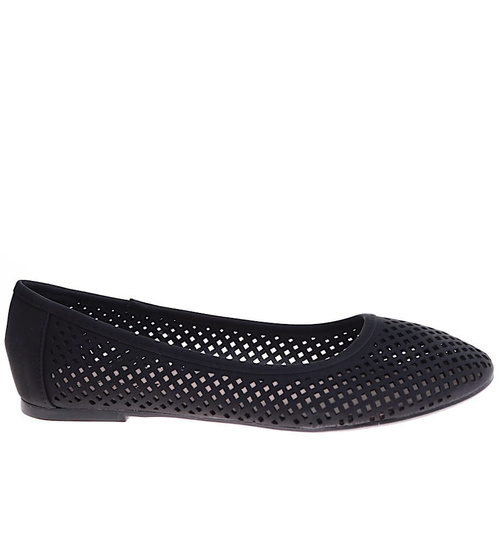 Ażurowe czarne baleriny płaskie /F6-3 16145 S132/