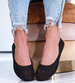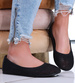 - Modne baleriny wykonane z materiału skóropodobnego w kolorze czarnym.