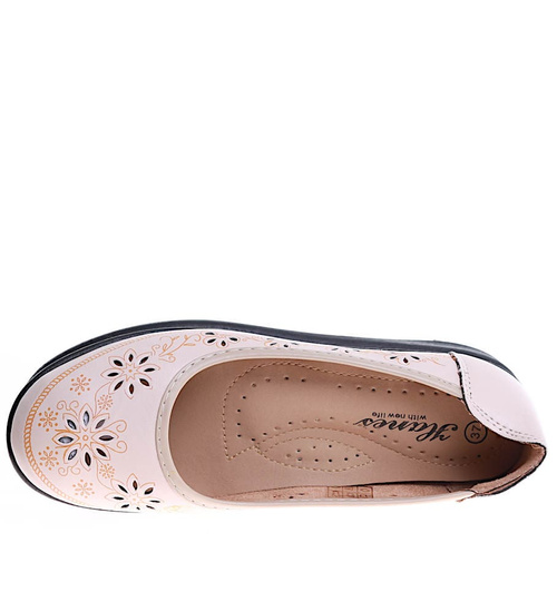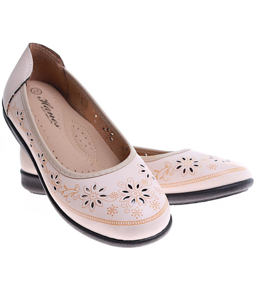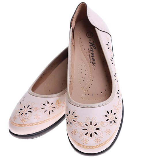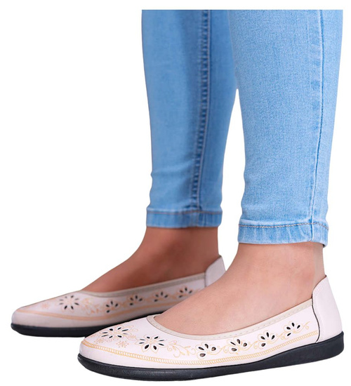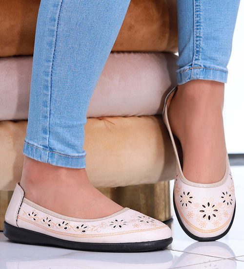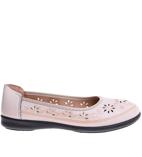 Beżowe ażurowe półbuty damskie /F6-2 16166 T191/