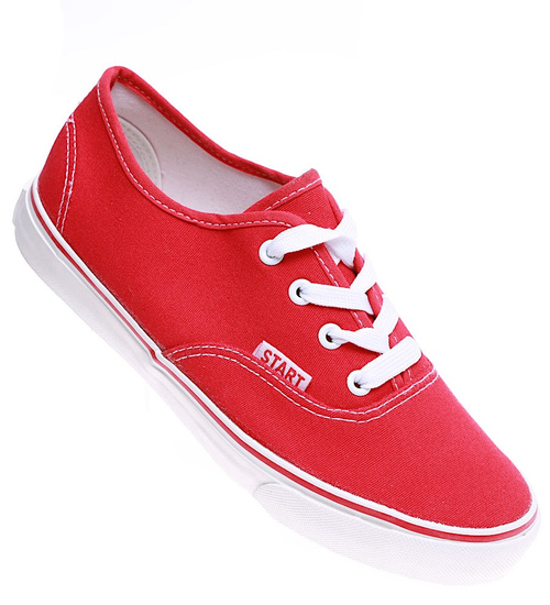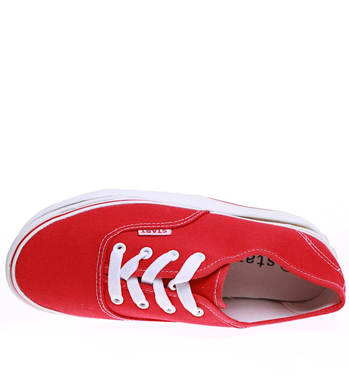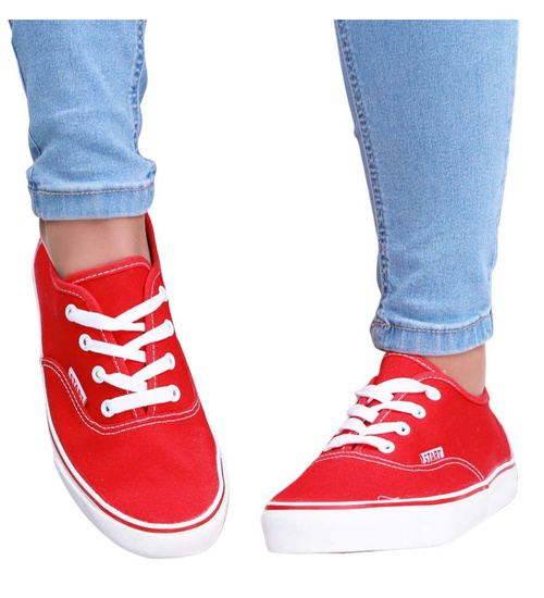Czerwone niskie tenisówki damskie z tkaniny /E2-2 15981 G152/