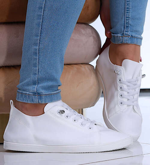- Wiązane damskie trampki w klasycznym, białym kolorze- ciekawa, casualowa propozycja.