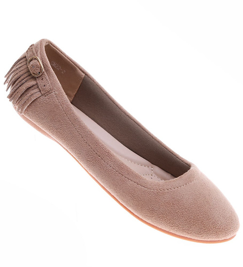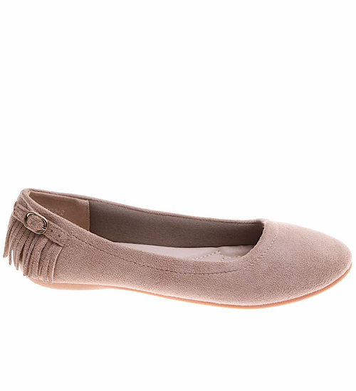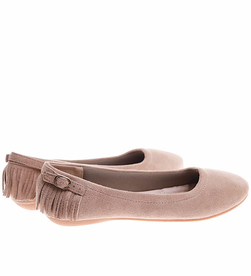 Zamszowe beżowe baleriny z frędzlami /C6-216306 T172/