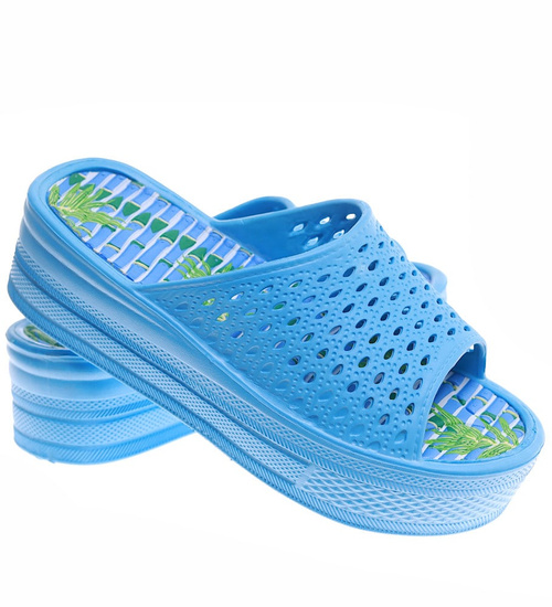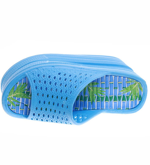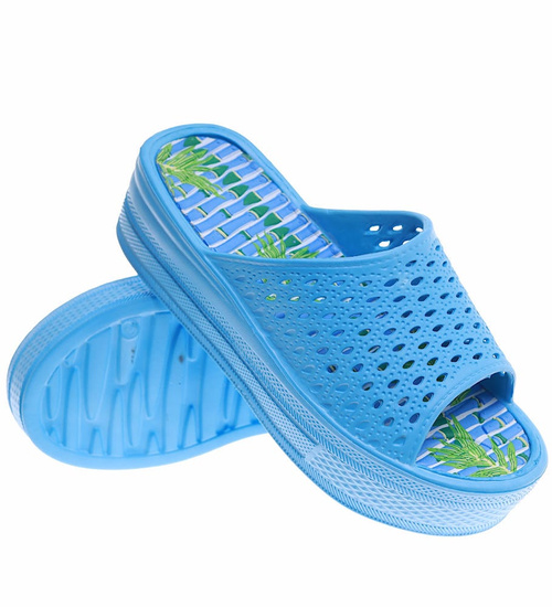 Plażowe niebieskie klapki basenowe na platformie /E10-1 16574 T11-6/
