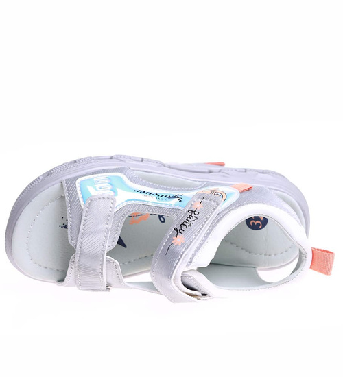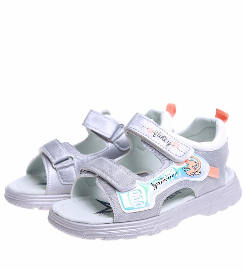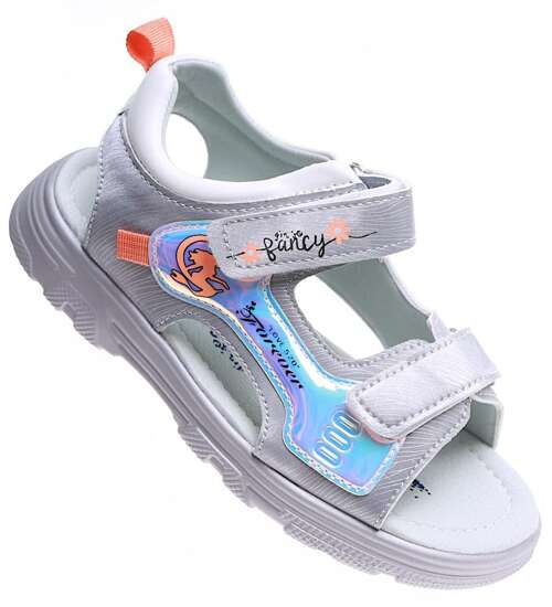 Szare sandałki dziewczęce na rzepy /B4-3 16588 T384/