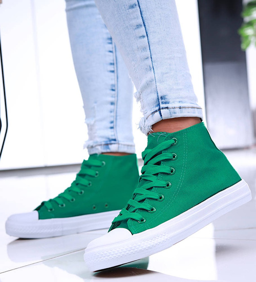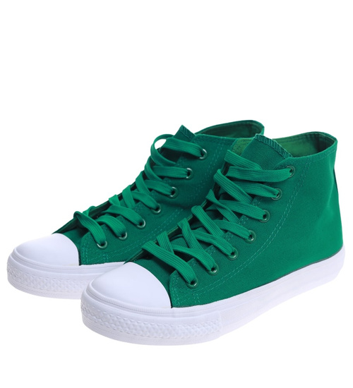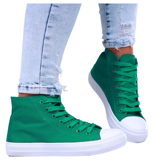 Klasyczne zielone trampki damskie z wysoką cholewką /H2 16731 G9-84/