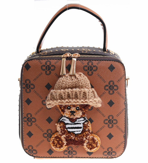 Camelowo brązowa torebka kuferek z misiem /H2 K43 TB552 S482/