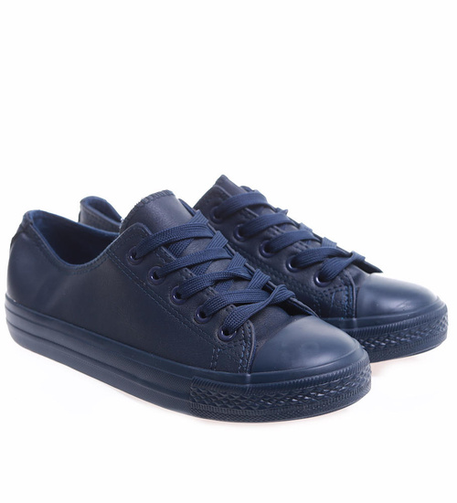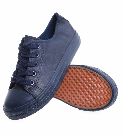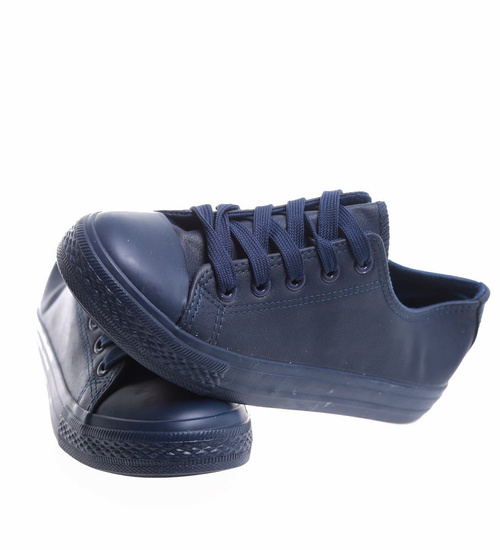 Granatowe dziecięce trampki z materiału skóropodobnego to idealny wybór dla aktywnych maluchów.