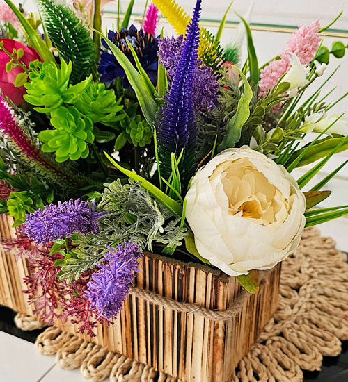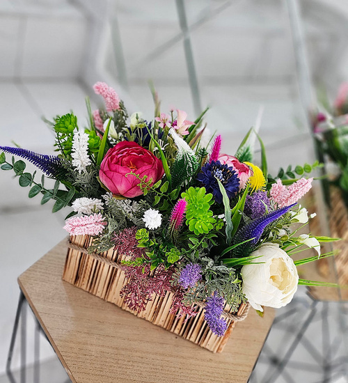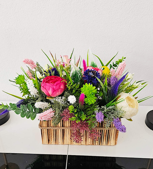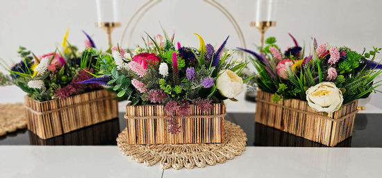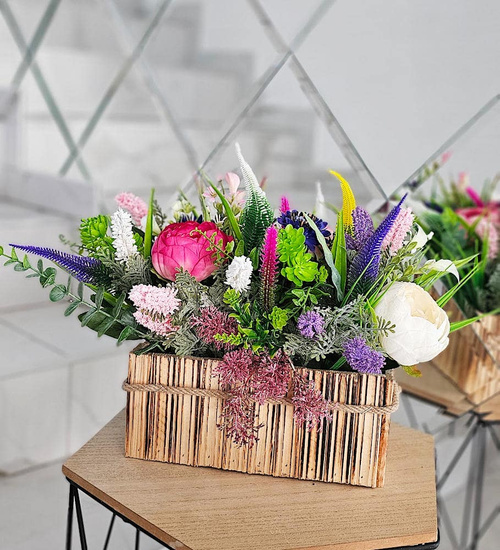 - Starannie dobrane i ręcznie ułożone wrzosy tworzą harmonijną mieszankę kolorów, która wprowadza subtelny urok do wnętrza. Drewniana skrzynka o przewadze brązu podkreśla naturalne piękno kwiatów, tworząc elegancki i rustykalny akcent, który doskonale wpisuje się w różne style wnętrzarskie.