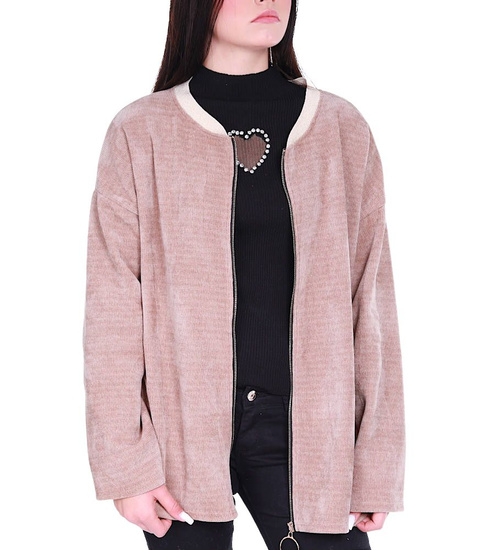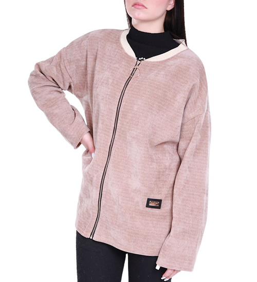 - ✔️Oversizowa beżowa damska z suwakiem w kolorze ciemno beżowym.