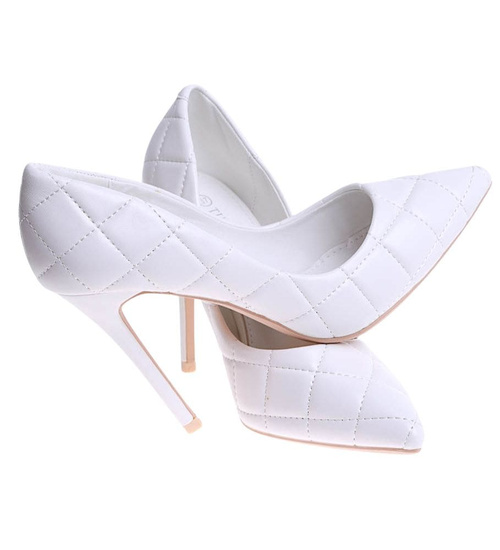 Białe czółenka damskie na szpilce /D7-3 16194 G157/