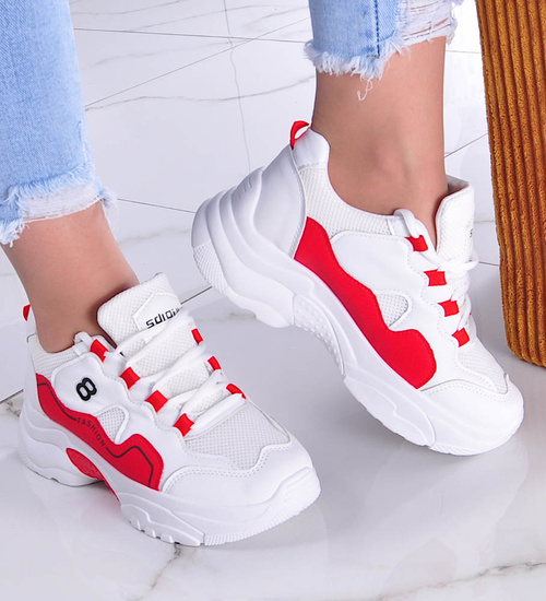 Sznurowane biało czerwone buty sportowe /B5-3 11348 T297/