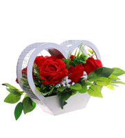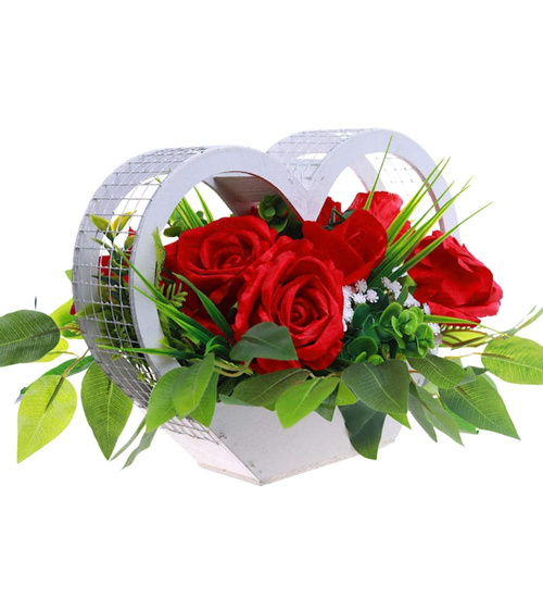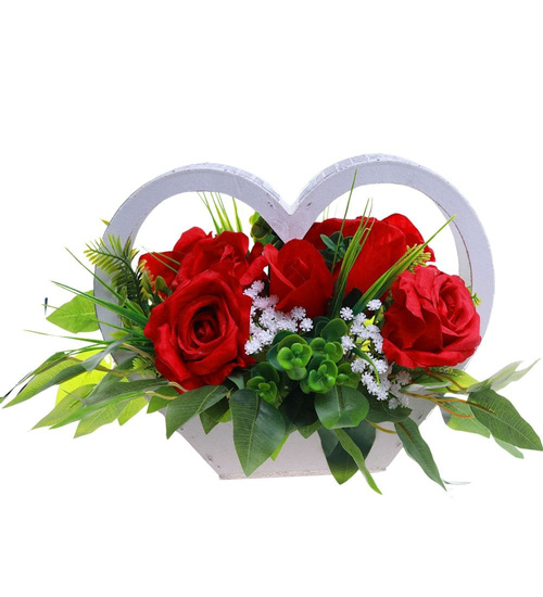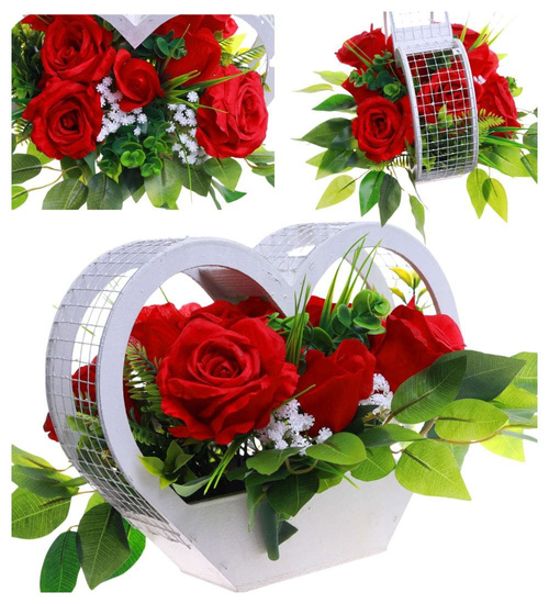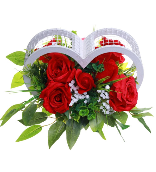 Kompozycja kwiatowa- czerwone róże w białym sercu /Komp101 P328/