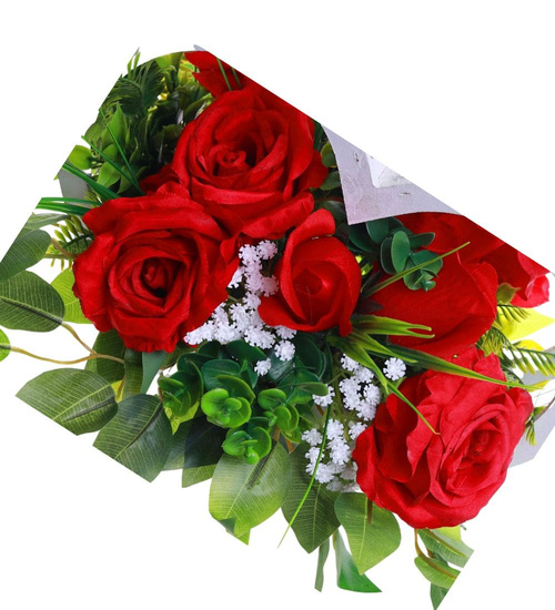 - Materiały i kolorystyka: Wykonana z wysokiej jakości sztucznych kwiatów, kompozycja gwarantuje trwały, elegancki wygląd. Delikatna biel róż kontrastuje z naturalną zielenią liści, tworząc efektowny, subtelny przekaz.