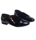- Wykonane z miękkiego, zamszowego materiału i wykończone lakierowanymi noskami, łączą klasyczny styl z nowoczesnym akcentem.