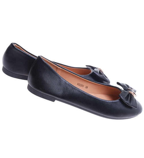 Czarne klasyczne baleriny damskie z kokardą /G6-3 17707 W182/