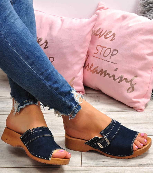 Drewniaki chodaki trepy klapki GRANATOWE /F6-1 1882 S493/