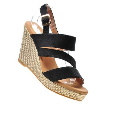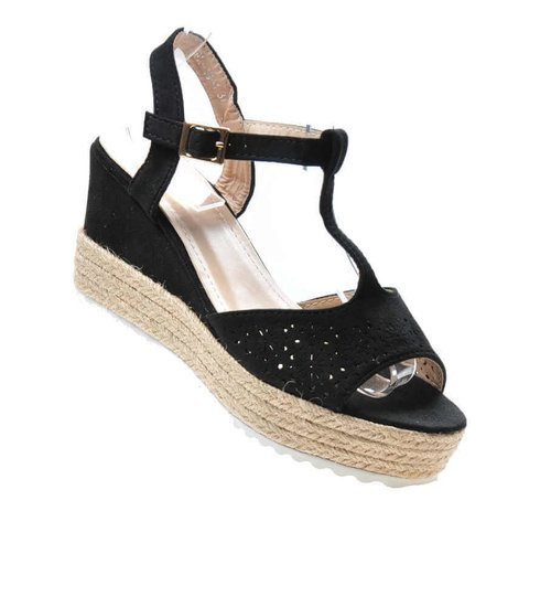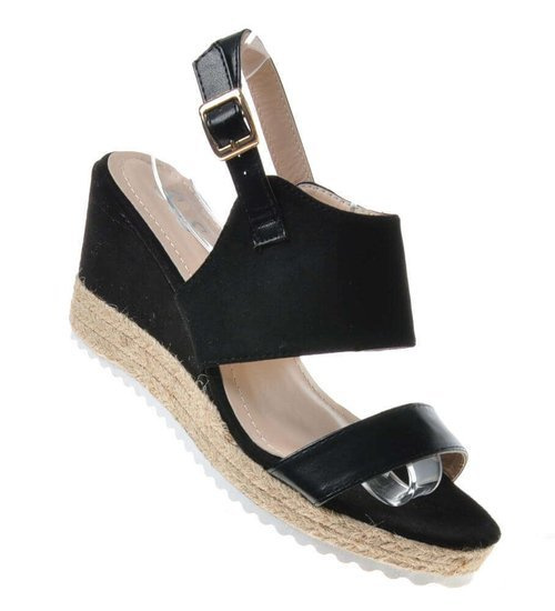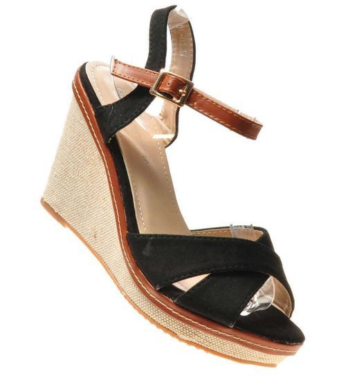 Czarne damskie sandały espadryle na koturnie /G5-3 16270 T192/