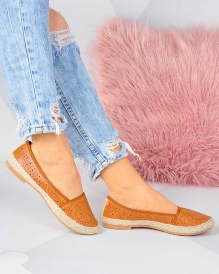 Karmelowe klapki na espadryle na platformie /E4-3 17934 G182/