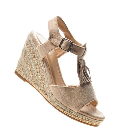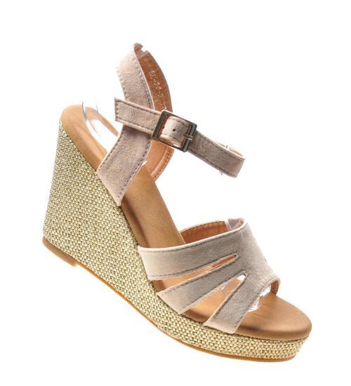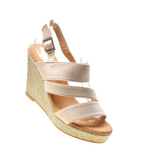 Sandały damskie na koturnie i platformie Beżowe espadryle /D1-1 17861 T582/