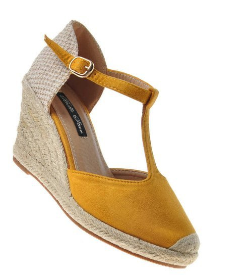 Sandały damskie na koturnie i platformie Żółte espadryle /D2-1 17864 G088/