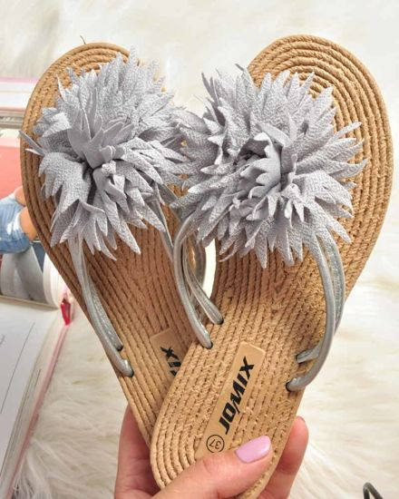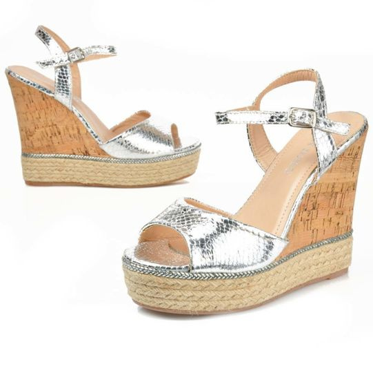Sandały damskie na koturnie i platformie Srebrne espadryle /A9-1 17868 G187/