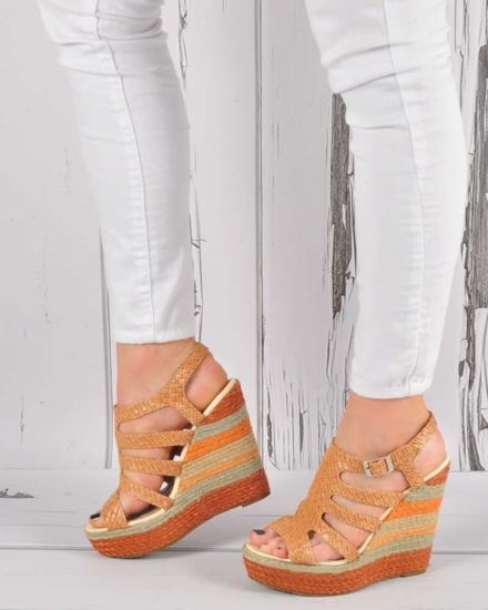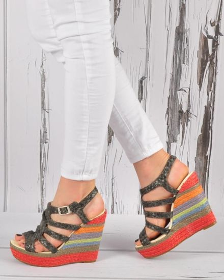Sandały damskie na koturnie i platformie Kolorowe espadryle /A6-1 17870 G187/