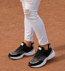 Wiązane czarne damskie trampki na elastycznej platformie /A4-3 15695 D T184/