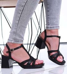 Czarne sandały na grubym obcasie Lace up /A5-3 16177 G132/