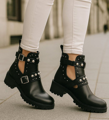 (ilość produktów: 731)Czarne damskie botki z wycięciami /G13-3 13400 T198/