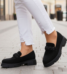 Czarne półbuty mokasyny na platformie /A2-2 12705 T598/
