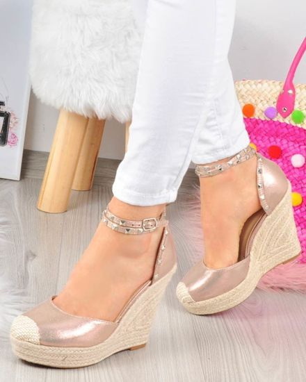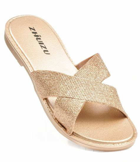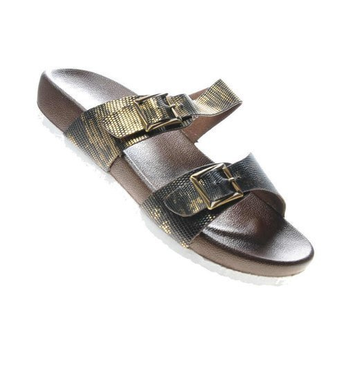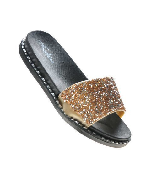 Złote klapki klamerki na niskiej platformie /G8-3 17661 G289/