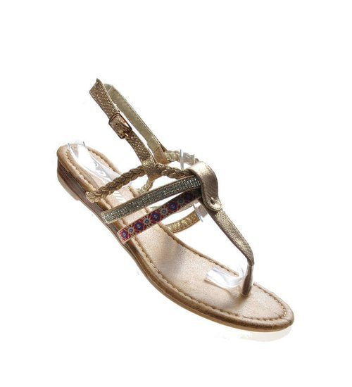Złote damskie sandały rzymianki /D8-3 17677 T335/