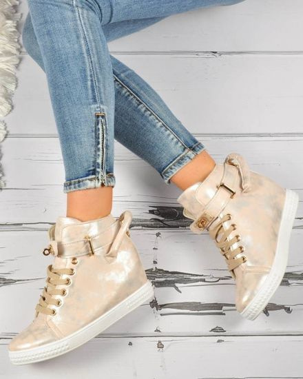Ażurowe złote trampki damskie ost520