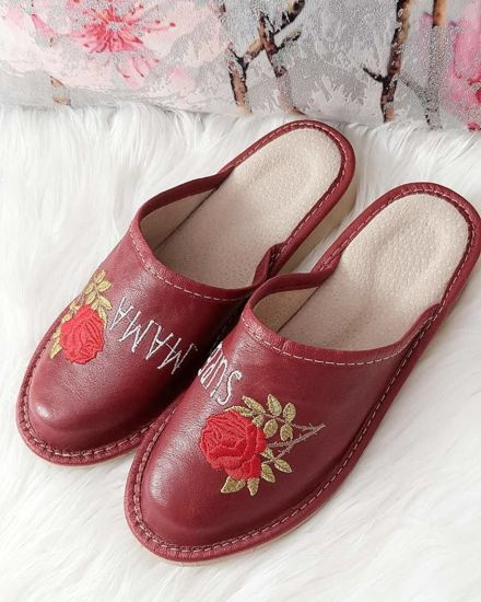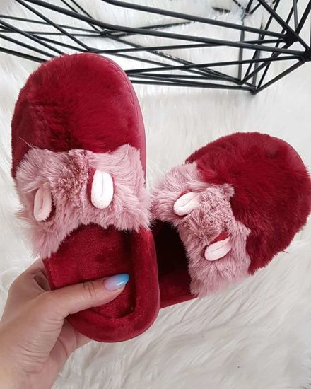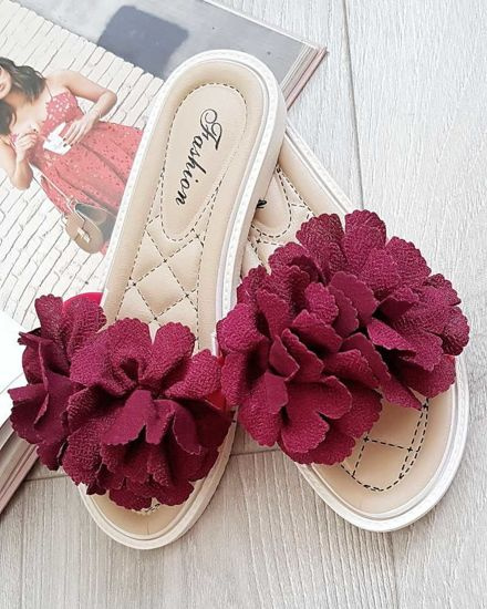 Bordowo czarne klapki na płaskim obcasie /H2 14344 T005/