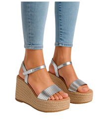 Sandały damskie na koturnie i platformie Srebrne espadryle /A9-1 17868 G187/