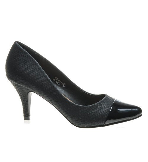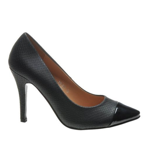 Eleganckie botki zimowe na obcasie czarne /C7-3 18571 W422/