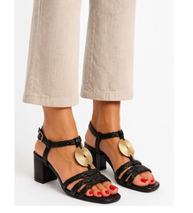 Czarne sandały na grubym obcasie /G10-3 16079 G137/