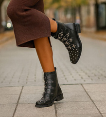 Brązowe ażurowe botki trapery na platformie /16770 F1-1 G381 +h2/