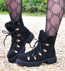 Wysokie botki sztyblety z obszytym kożuszkiem Czarne /G7-3 12599 T916/